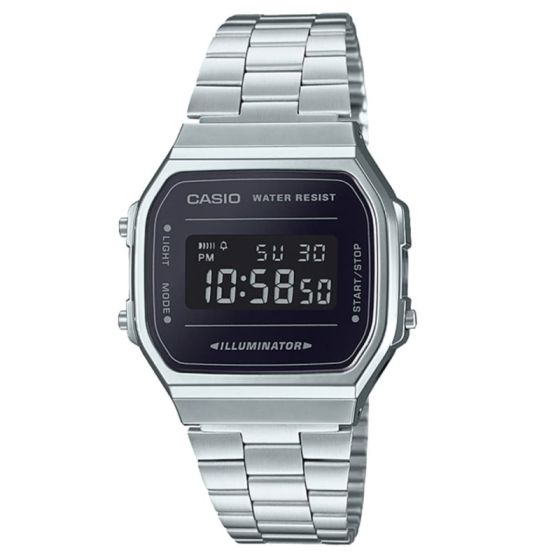 Casio A168WEM-1EF Classic Digital Watch - Silver with Black Case